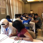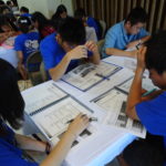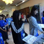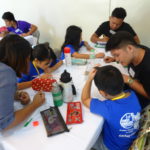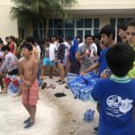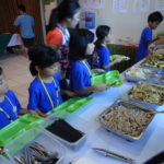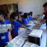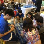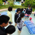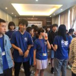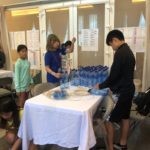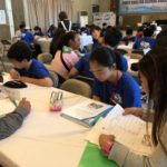 小学生の両替は同じグループの中学生、高校生のお兄さん、お姉さんがお手伝い。