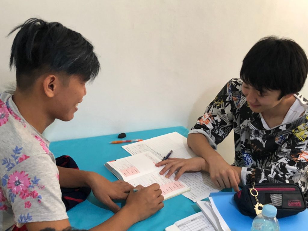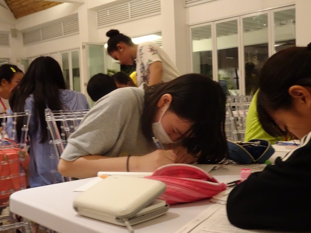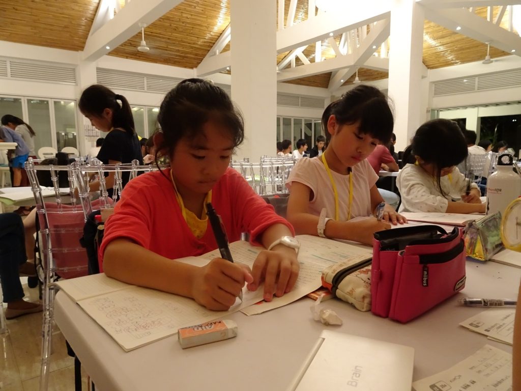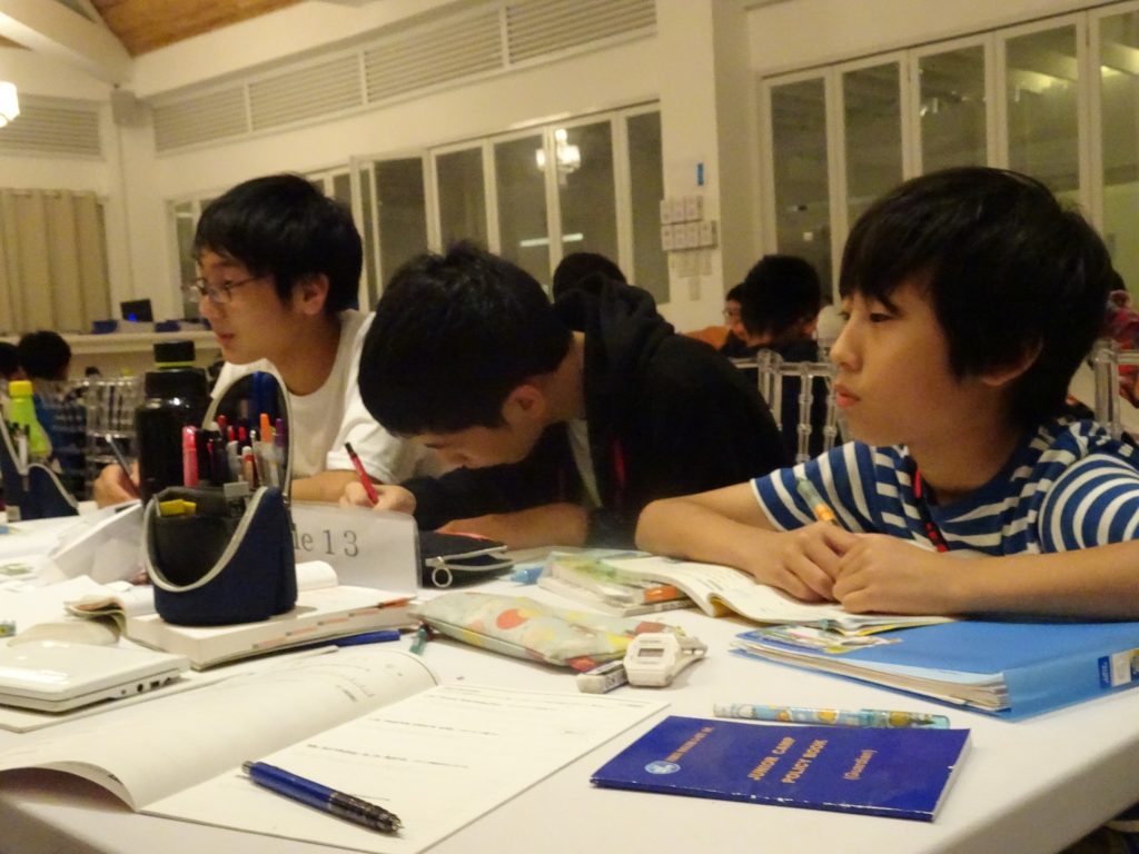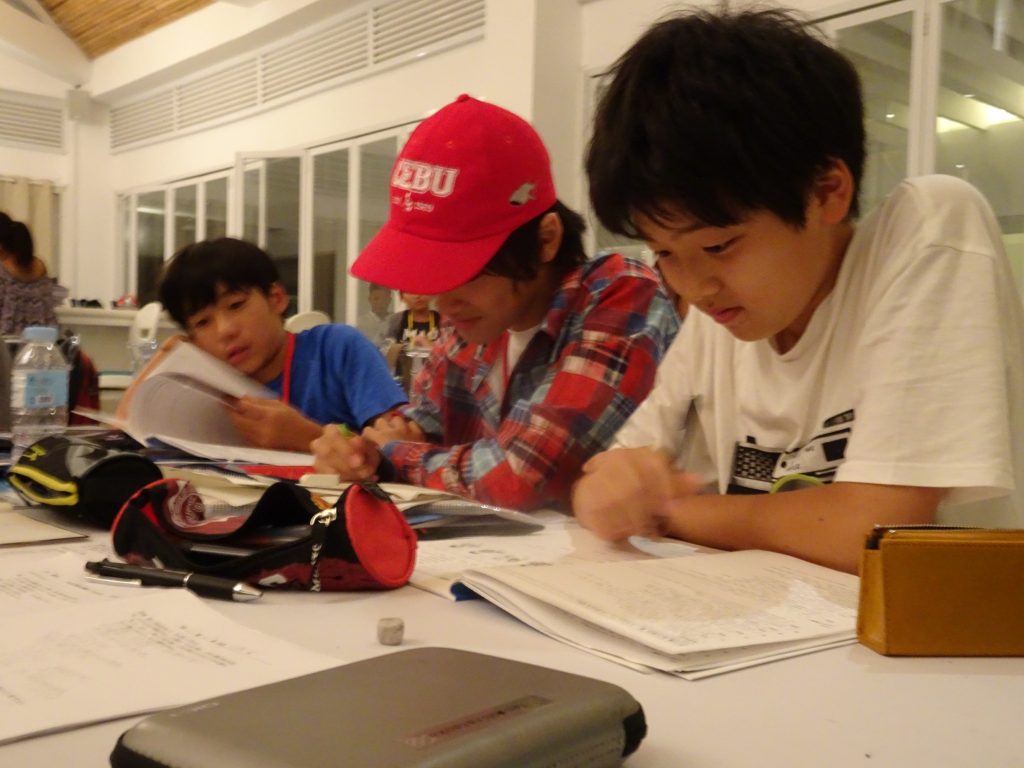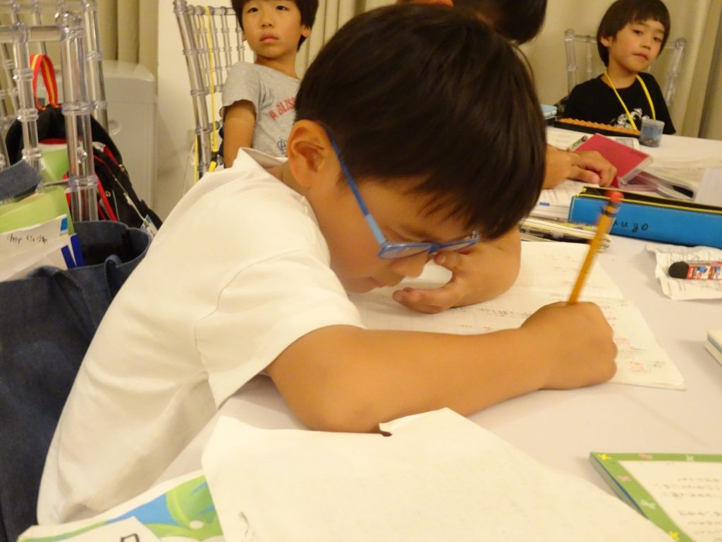 夕食の後は日本の宿題タイムです!