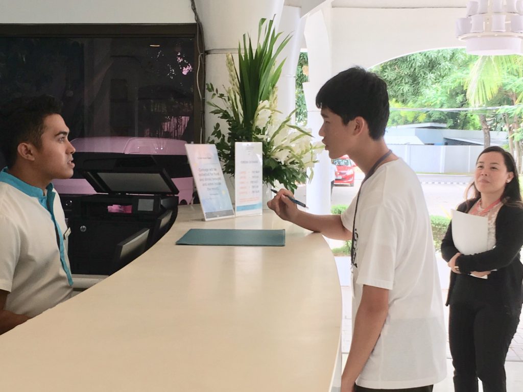 今回のグループクラスの高校生は、ホテルスタッフに直接、英語で質問する授業をしました。