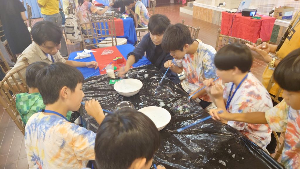 今日の理科の実験教室は「Unpoppable Bubbles」という実験をしました!シャボン玉を使った実験なので、「なつかしい!」と言いながら楽しんでいる生徒が多くいました。