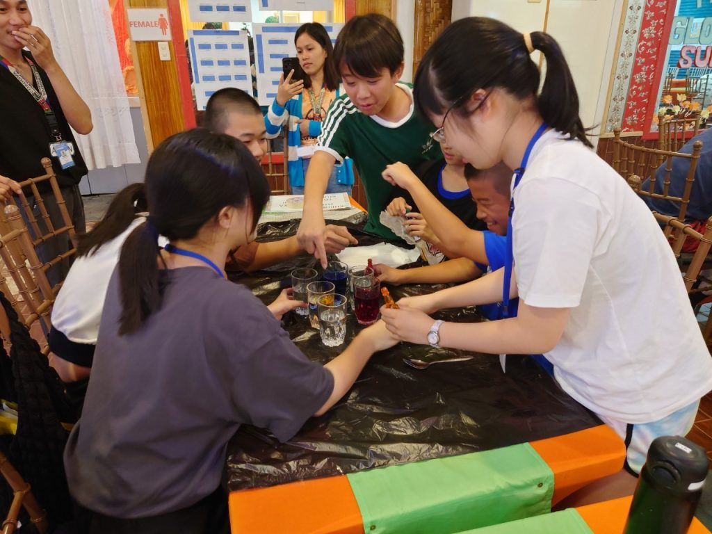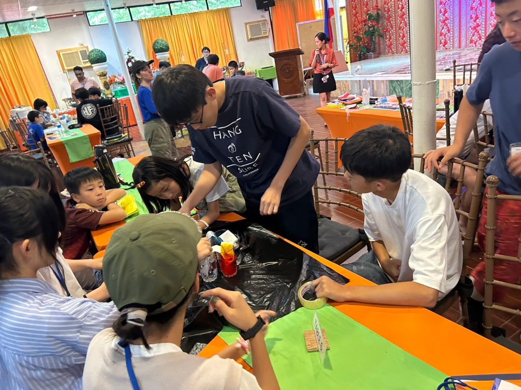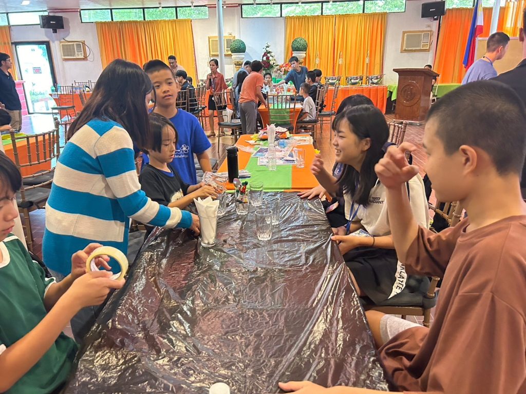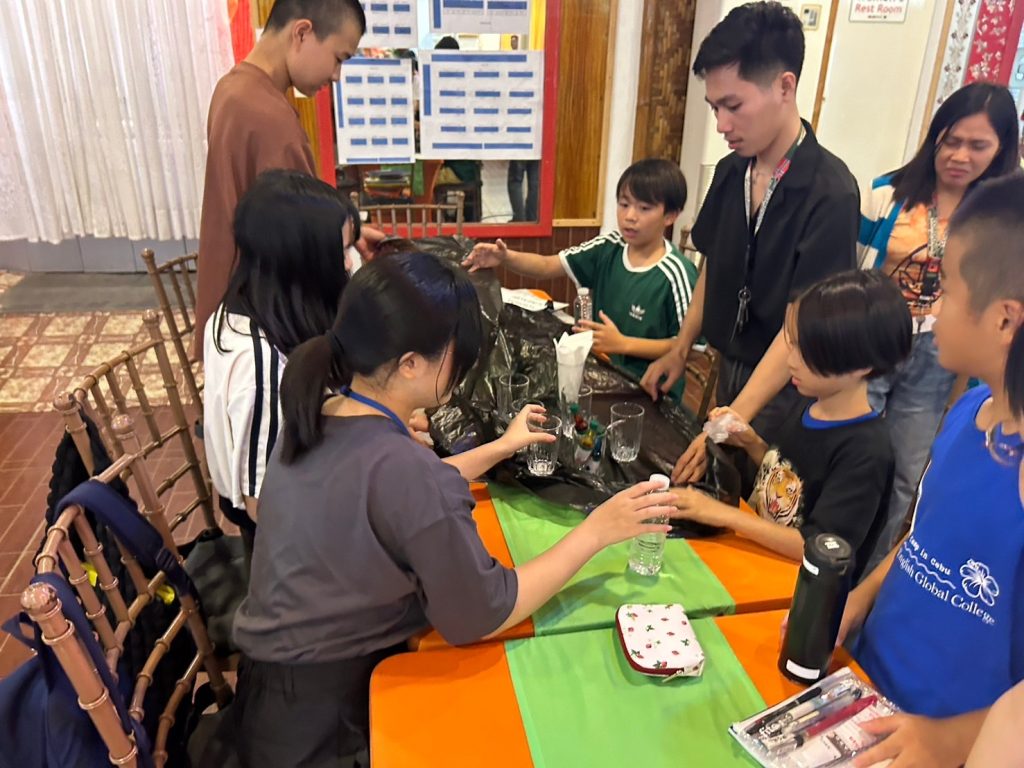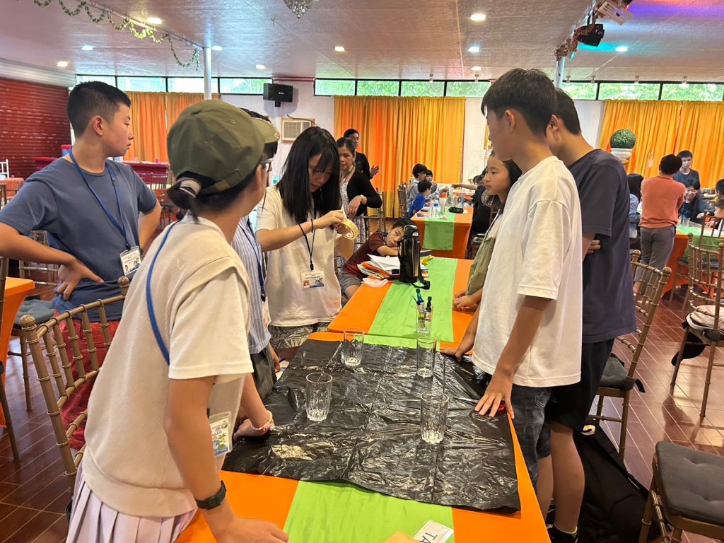 小中学生には理科の実験教室(Science Class)が午後にあります。実験教室では普段とは違った単語を使うので、初日の今日は簡単なWalking WaterとRising Waterという実験をしました。色水を作るための食紅で手が染まって楽しんだり、どの班が一番良い実験結果を出せるか競争をしたりしてみんな大はしゃぎです!