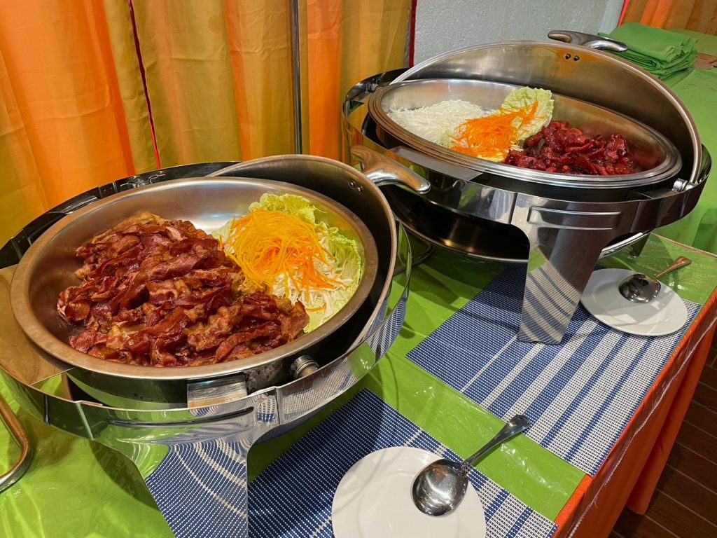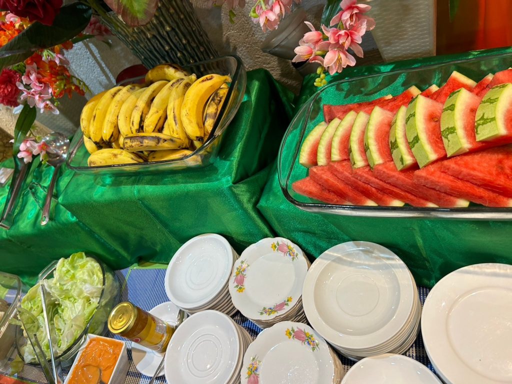 朝はカリカリに焼かれたベーコンが人気でした!南国のバナナはとても甘く、こちらも毎朝大人気です!