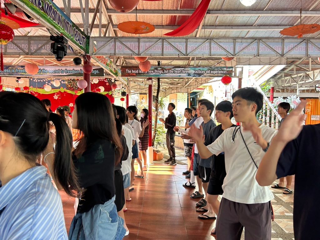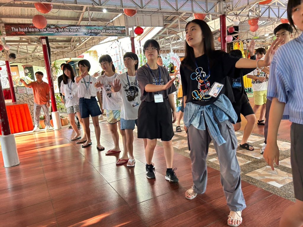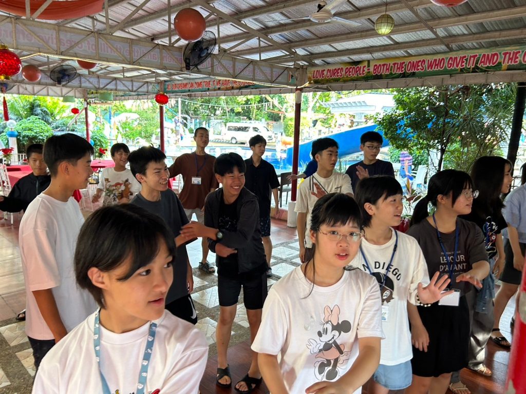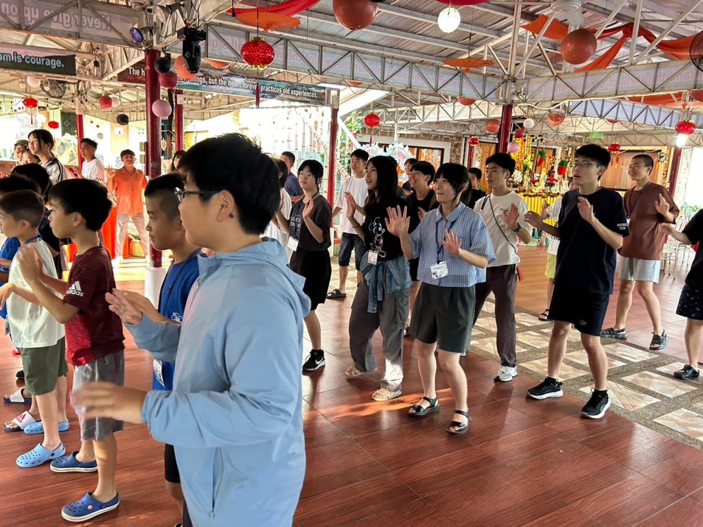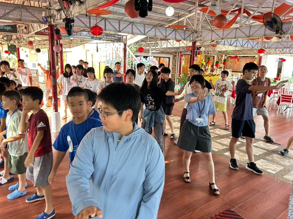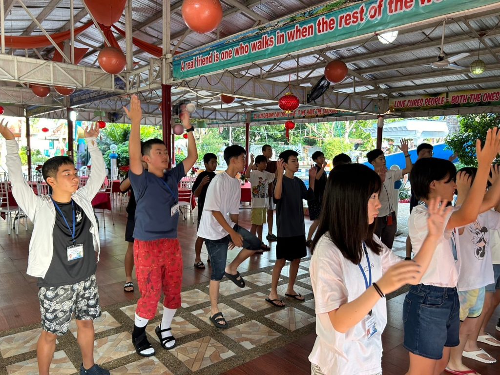朝にはダンスがあります!今日は初日でみんな振付を知らないながらも一生懸命踊っていました。