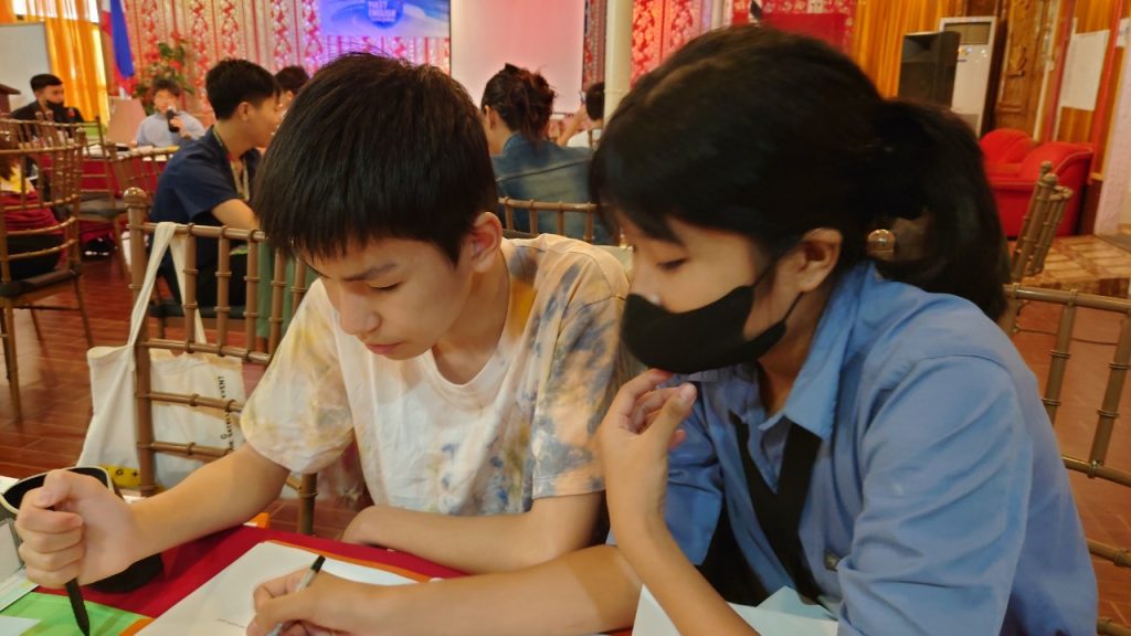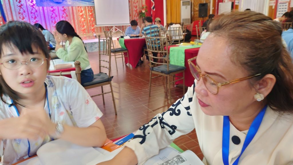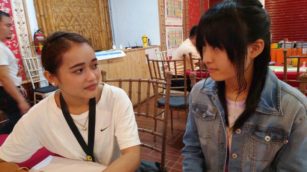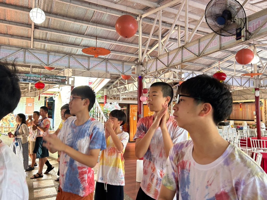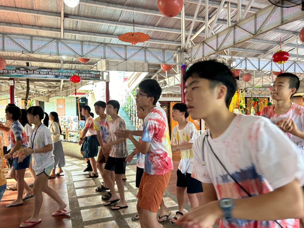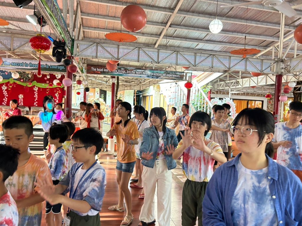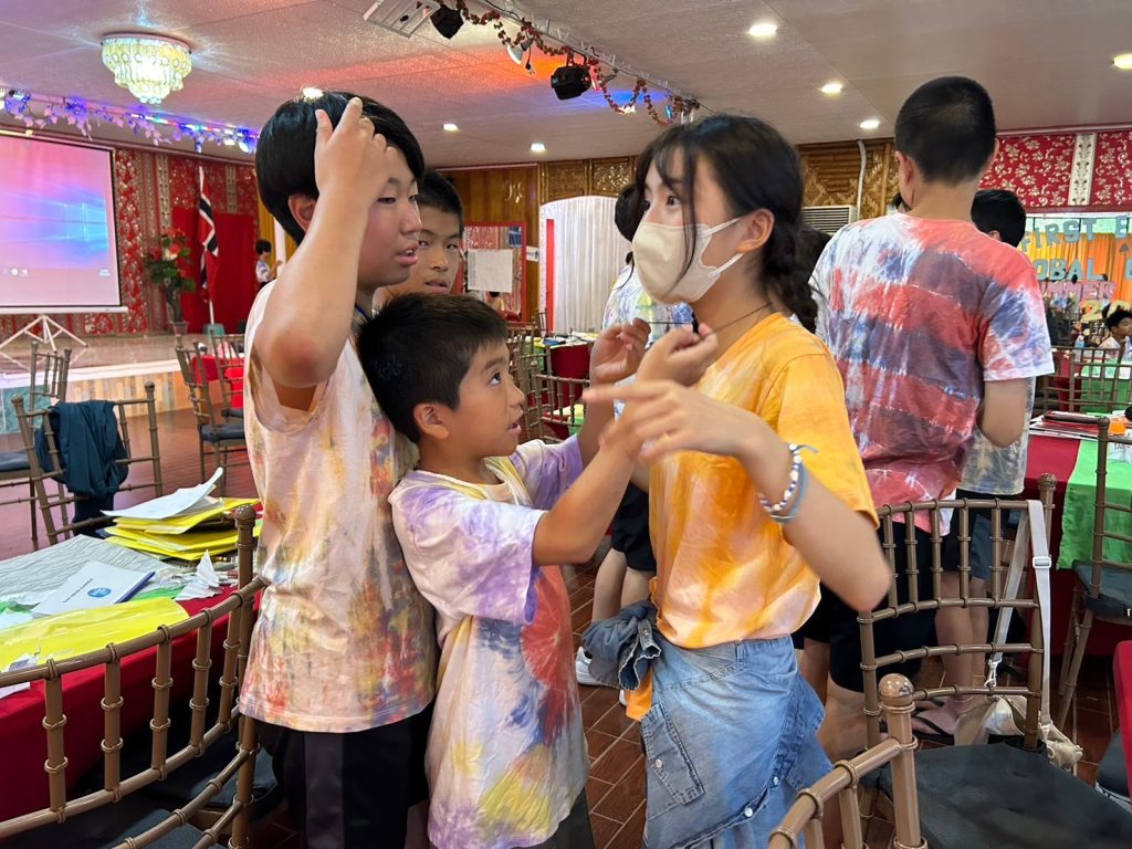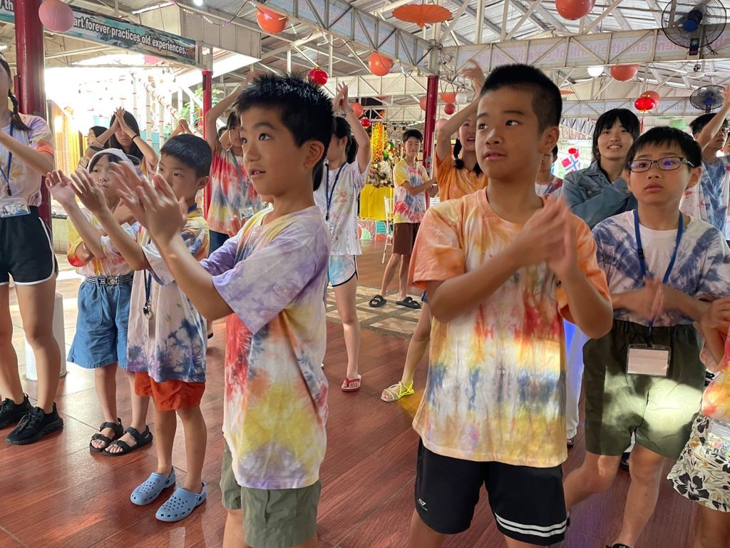 みんな年齢の分け隔てなく交流しています。市内観光で購入したアクセサリーを身に着けている生徒も多く、自慢げに紹介してくれました。