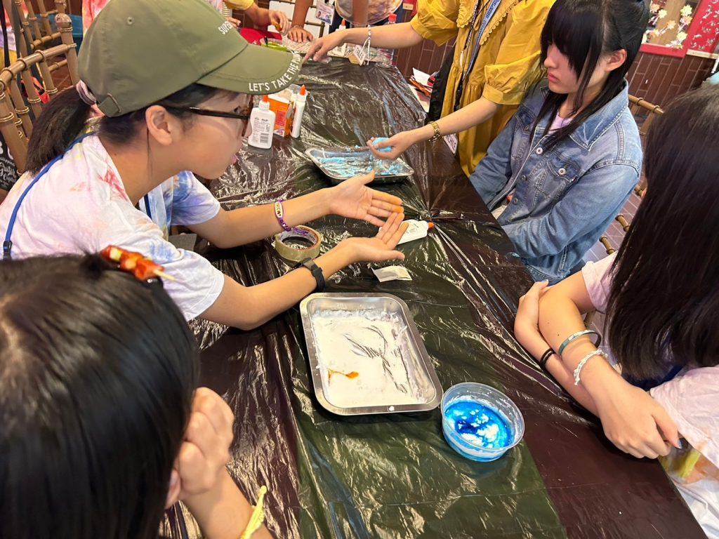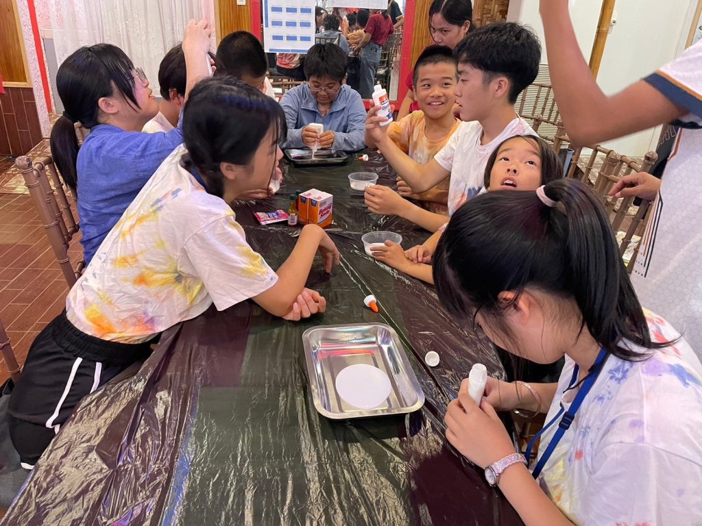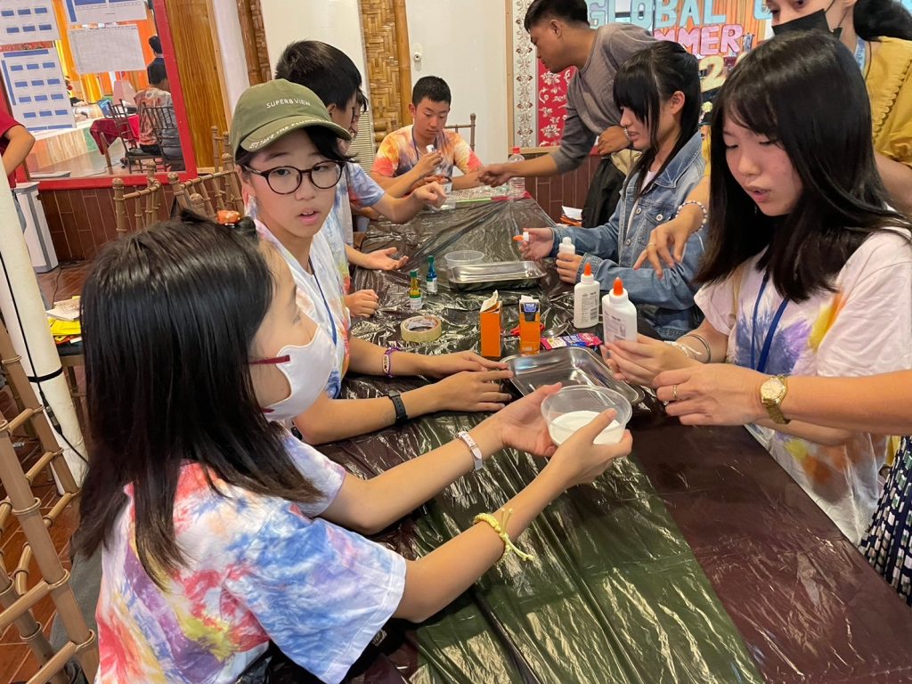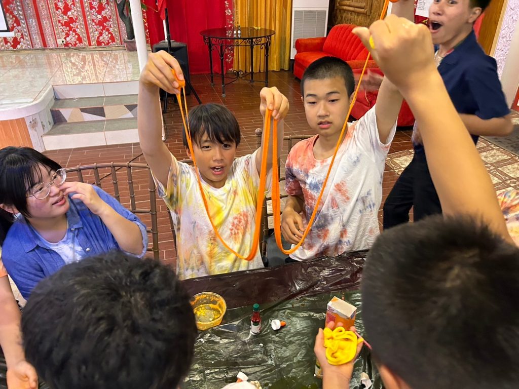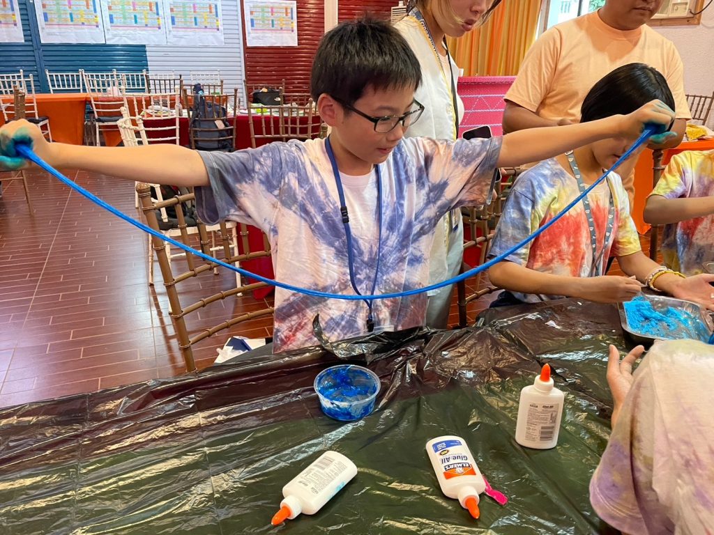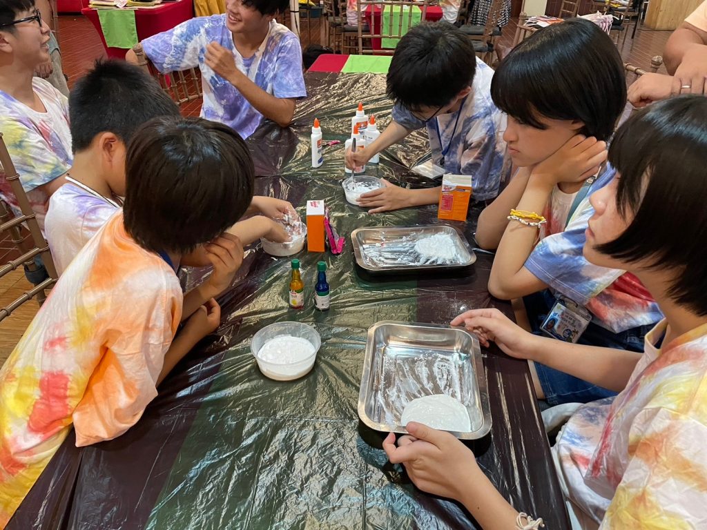 今日の実験は「Slime」です!材料を混ぜ合わせて、とっておきのスライムを作りました。なかにはものすごく伸びるスライムを作った生徒もいました。うまくいかなかった生徒も風船にスライムを詰めてスクイーズのようにしていました。