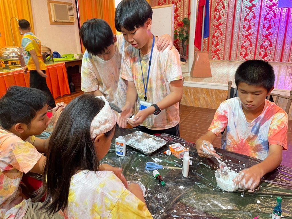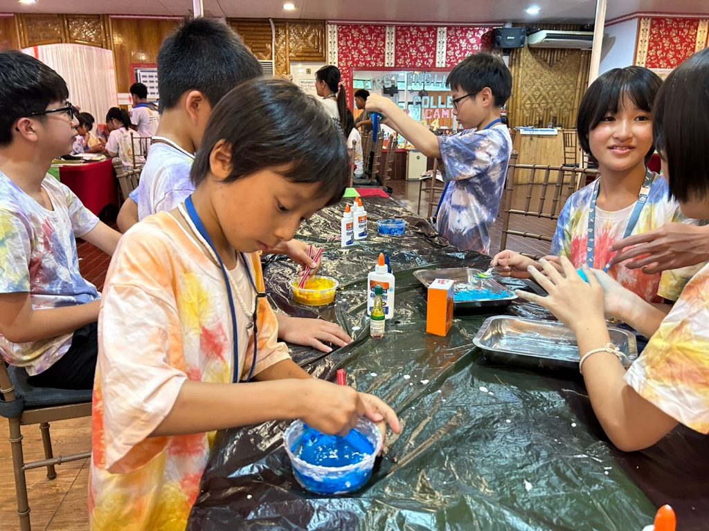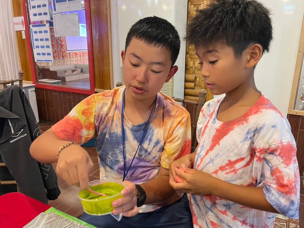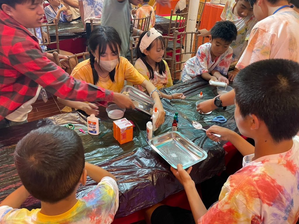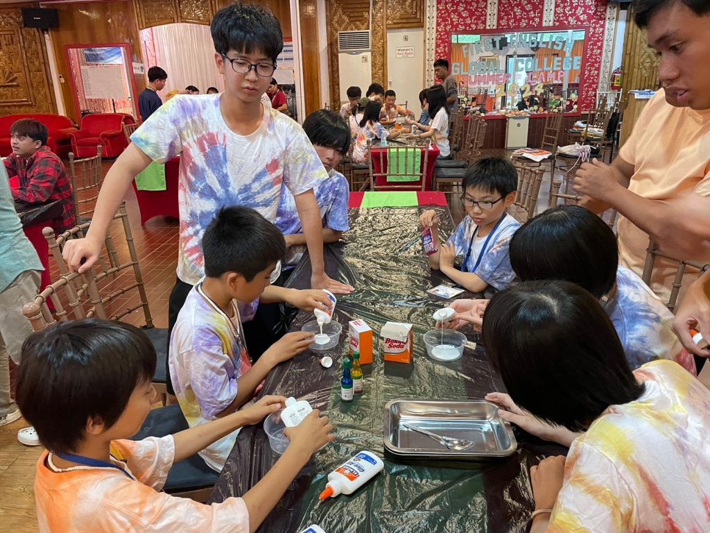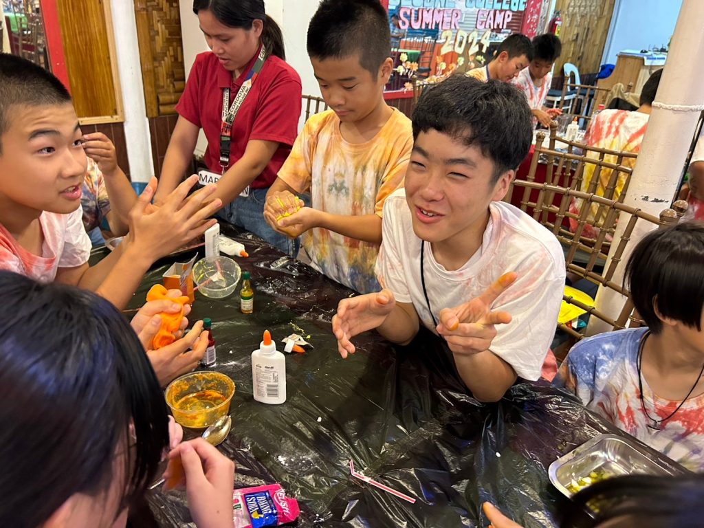 今日の実験は「Slime」です!材料を混ぜ合わせて、とっておきのスライムを作りました。なかにはものすごく伸びるスライムを作った生徒もいました。うまくいかなかった生徒も風船にスライムを詰めてスクイーズのようにしていました。