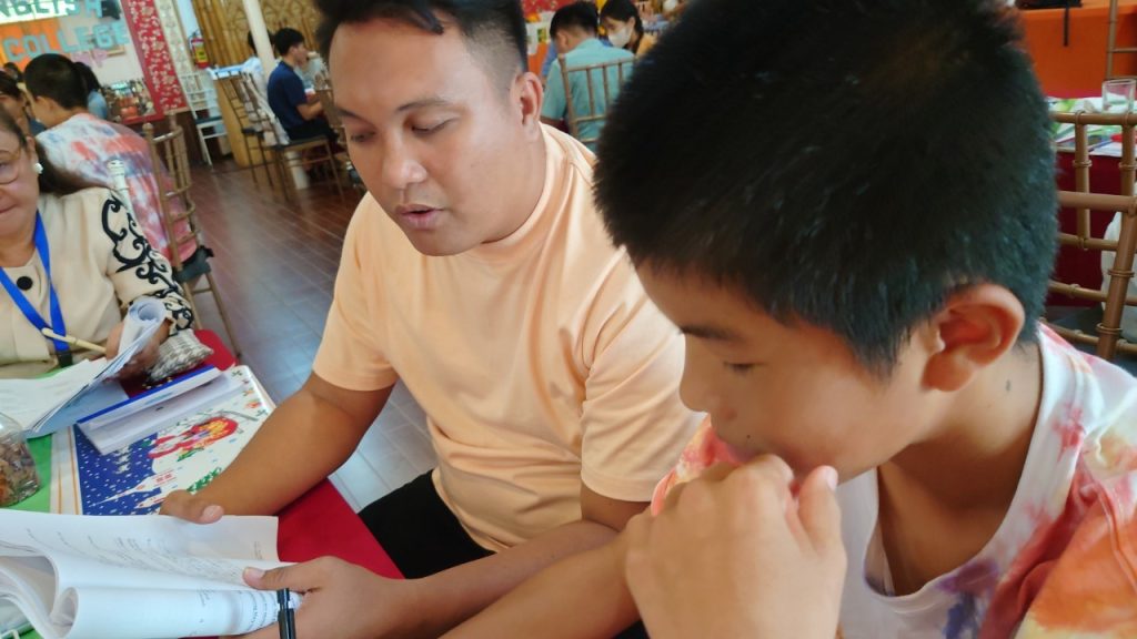 グループクラスでは英語のゲームで単語を学んだり、電子辞書でわからない言葉を調べながらカンバセーションしたりしていました。