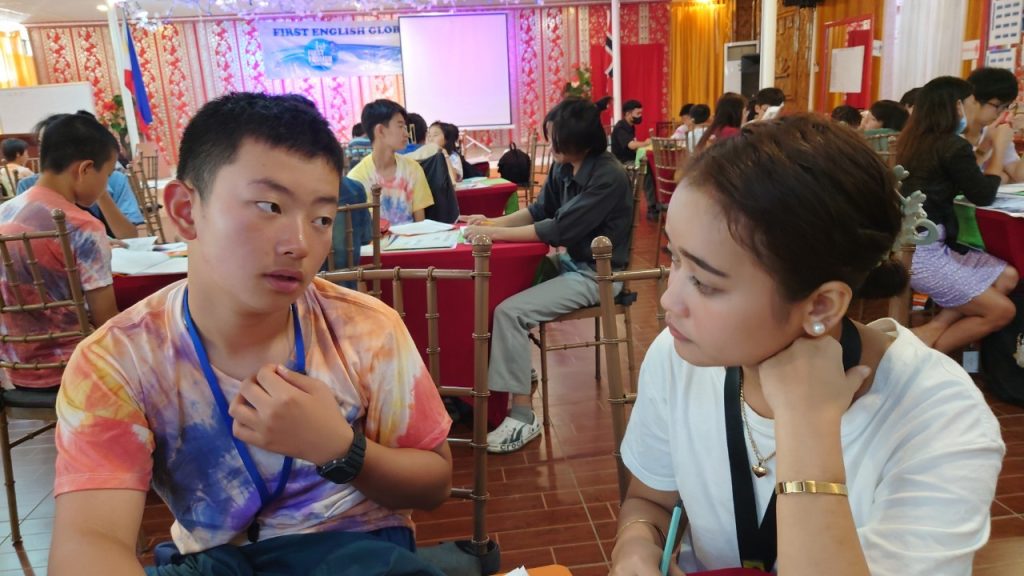 授業はみんな真剣そのものです。ジェスチャーを交えながら先生と会話をしている姿は、最初のころに比べて、とても逞しくなったように思います。