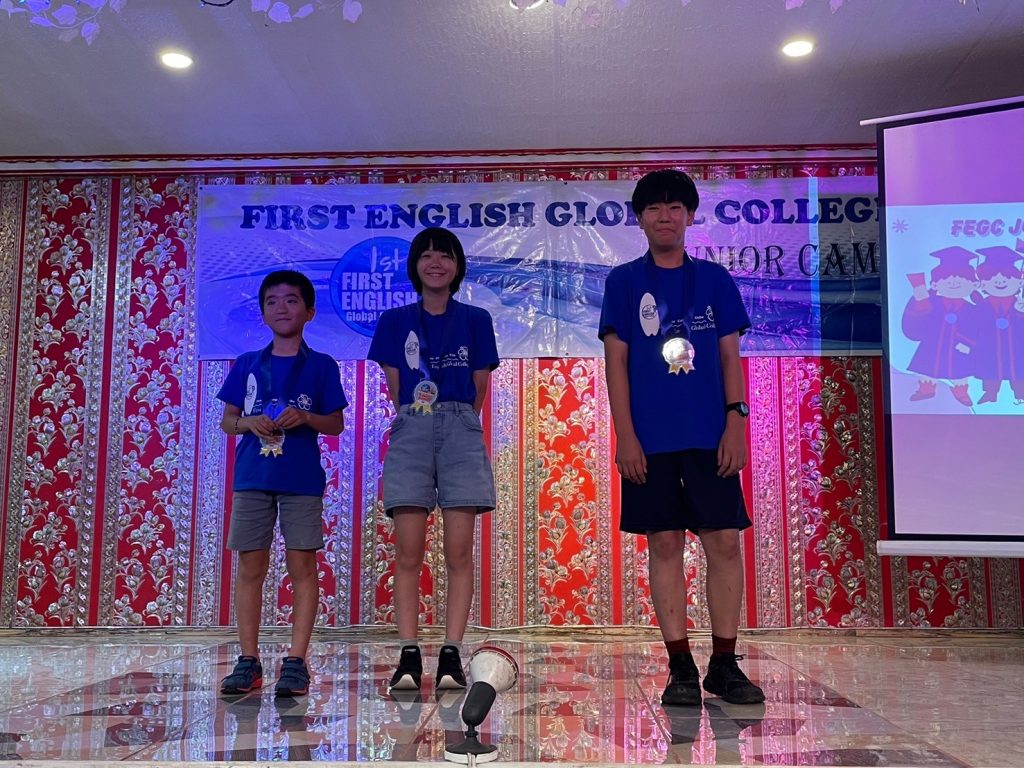 ショッピングから帰ってきたら、いよいよ卒業式です!卒業式はこの2週間がんばってきたみんなの表彰から始まりました。「先生の言うことをしっかり守れていた人」、「授業や生活で積極的に発言していた人」、「モーニングダンスで素敵なダンスをしていた人」など、様々な賞が送られました。