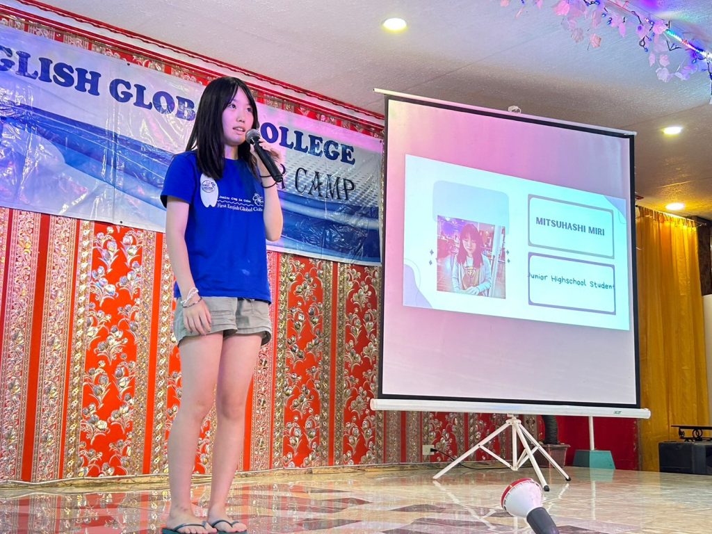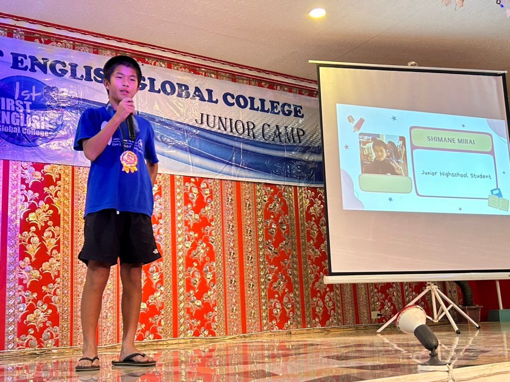 続いては、みんなが練習してきたスピーチの時間です。緊張しながらも、フィリピンでの思い出を堂々と語ってくれました。