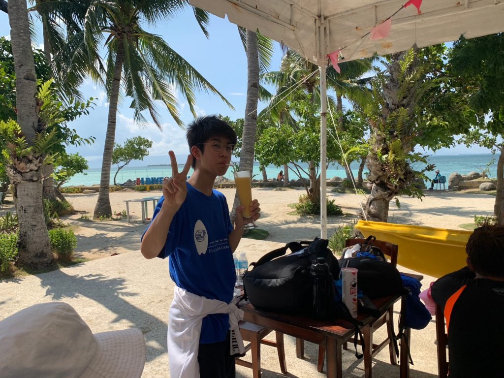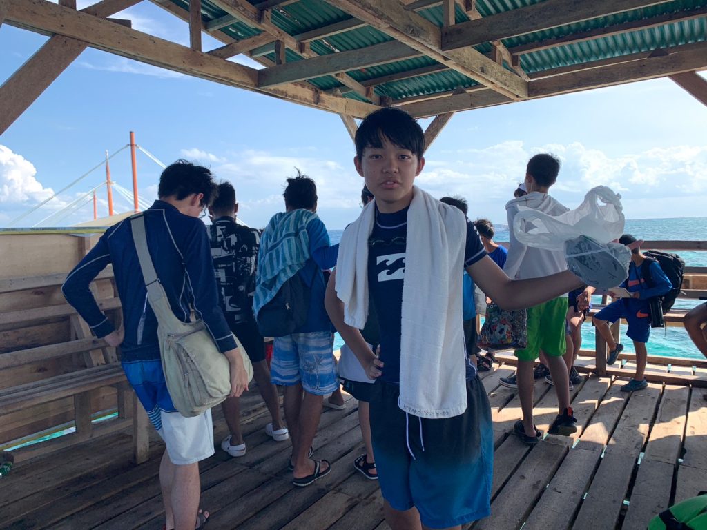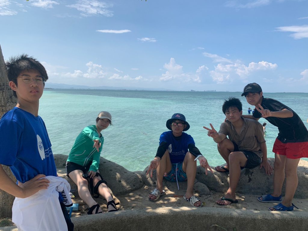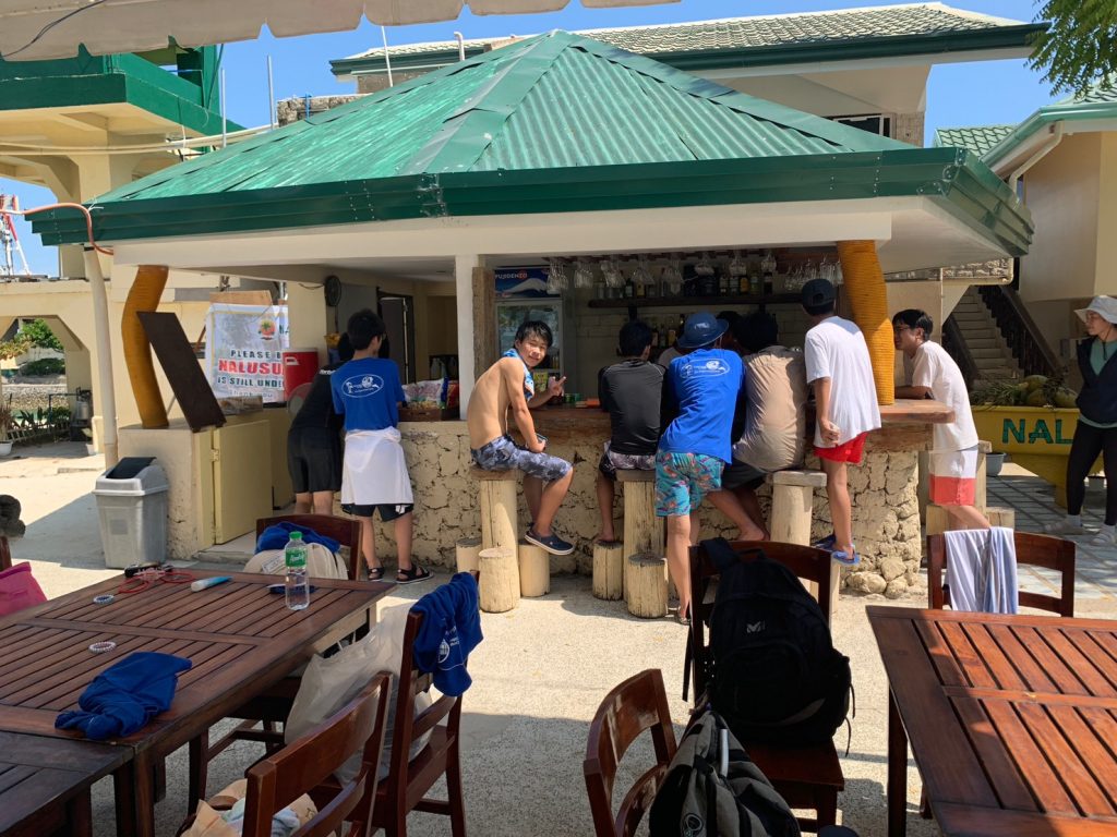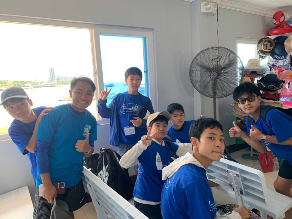 まずは集合写真を撮って、その後自由時間になります!ナルスアン島では約2時間自由時間があり、生徒たちは海で泳いだり、ショップでシェイクなどを注文したり、浜辺で休んだりしていました。