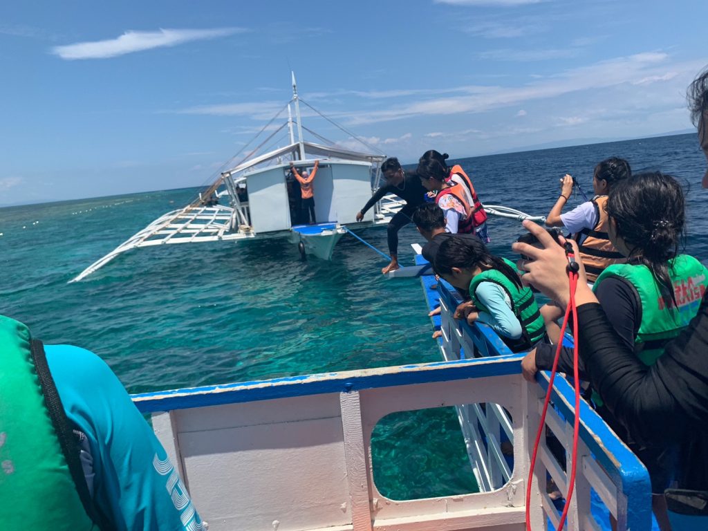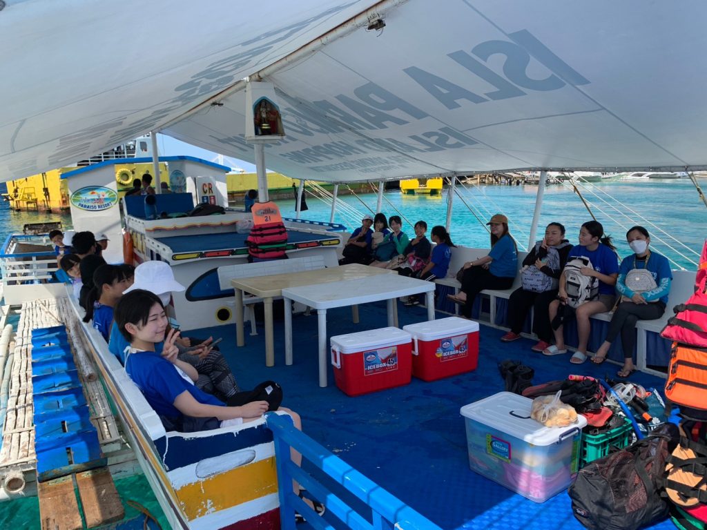 港まではバスで行きます!マクタン島にある港まで約30分ほどかかるのですが、フィリピンの街並みやおしゃべりでみんな楽しく過ごしています。