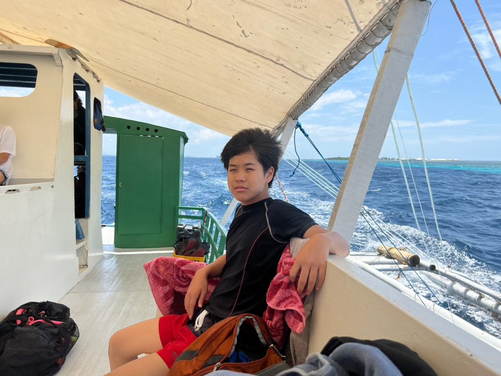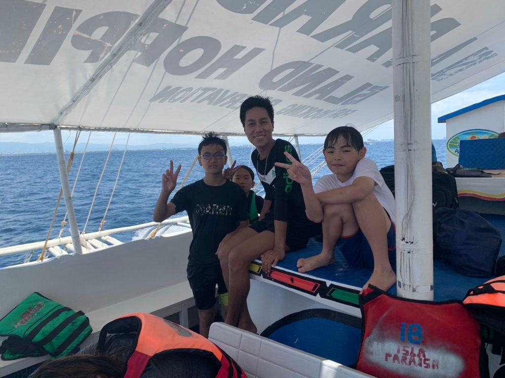 島を遊びつくしたところで、ホテルへ帰りましょう!帰りはみんなくたくたで、よく揺れるボートの上でも眠っていました。