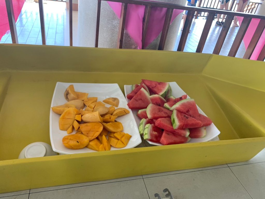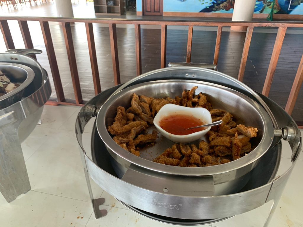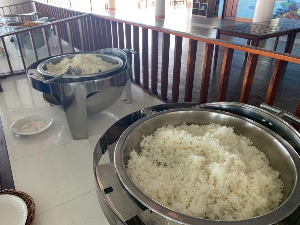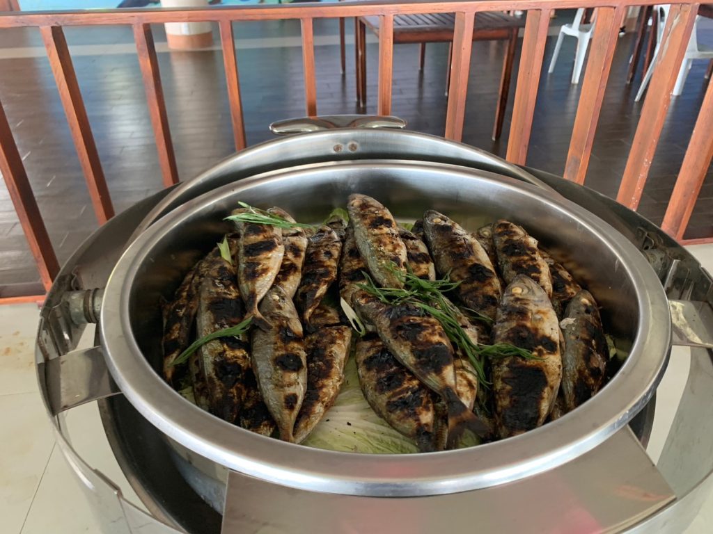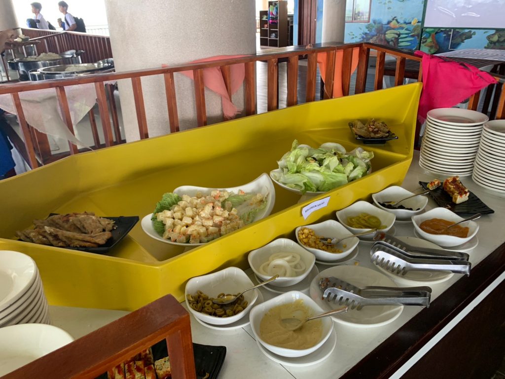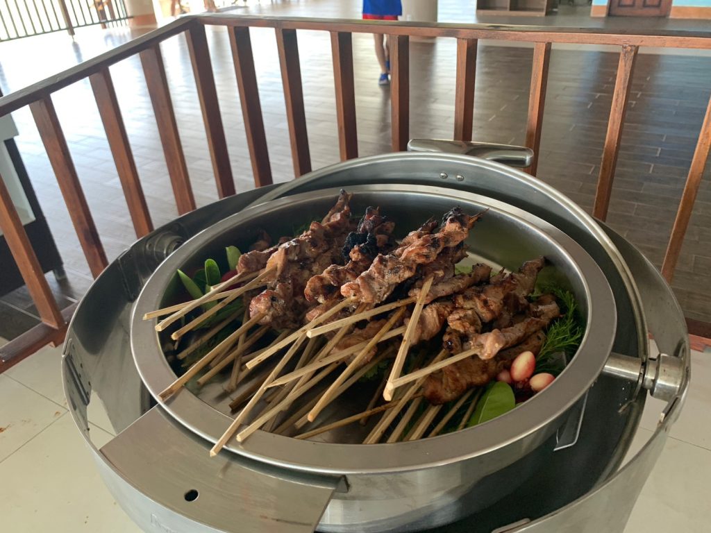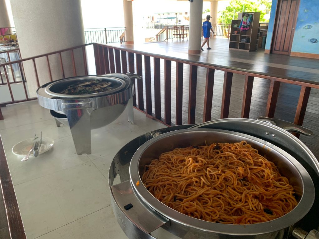 ナルスアン島に着いたら、まずは食事です!海上レストランでのビュッフェスタイルとなります。人気なのは海鮮パスタと、BBQのお肉でした。BBQのお肉は一人で10本食べてしまう生徒も!