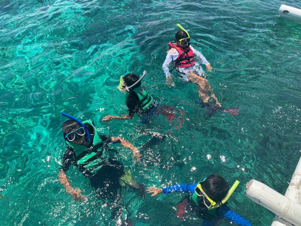 今日はアイランドホッピング(Island Hopping)に行きます!アイランドホッピングとは、ボートで離島にわたり、上陸などを楽しむアクティビティになっています。もちろん道中でのシュノーケリングや、小さな島での冒険も楽しむことができます。